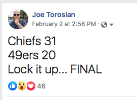 All of you better hope this doesn’t happen. Because, if it does, I will be impossible to be around. Sort of like I was last year when I called the final score of the Super Bowl.