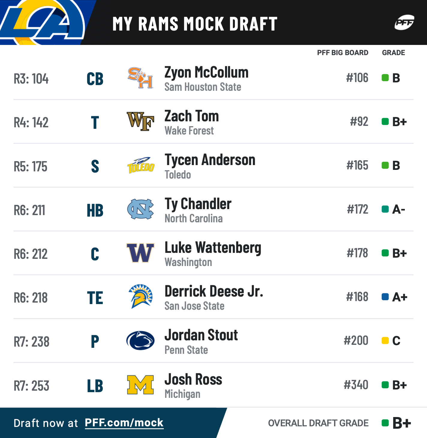This is my first Rams mock draft of the season. My approach was best available first, need second. (Send me yours, I’d love to post them.)